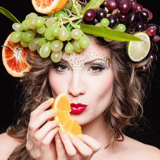 It was the famous fruit and plant portraits of Giuseppe Arcimboldo, the late Renaissance painter, that modelled as a template for the autumn images of Manuela’s Season Cycle. The undertaking for the photo sessions is considerable, from the selection of location to the search for matching and suitable accessories and (not to mention) the works of art hairstyling. Yes, some observers may only see beautiful women, but the subtle harmonising colour and light compositions, the devoted detail to scenes and above all the staging of the protagonists.